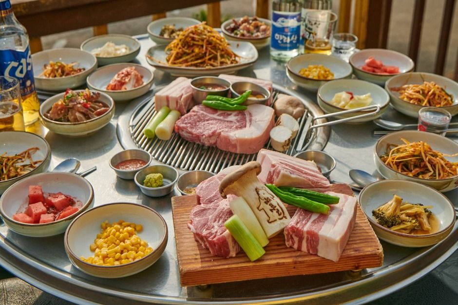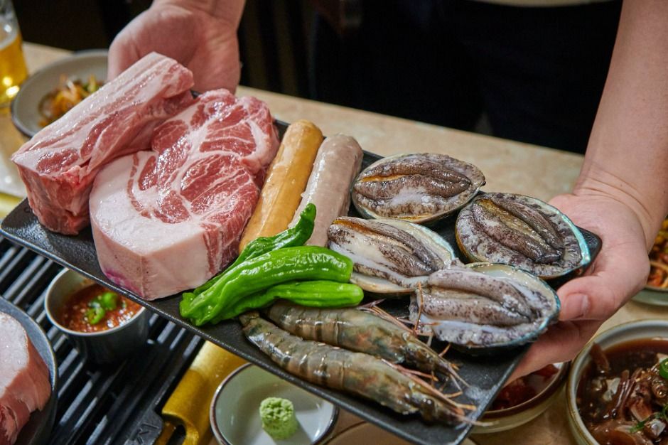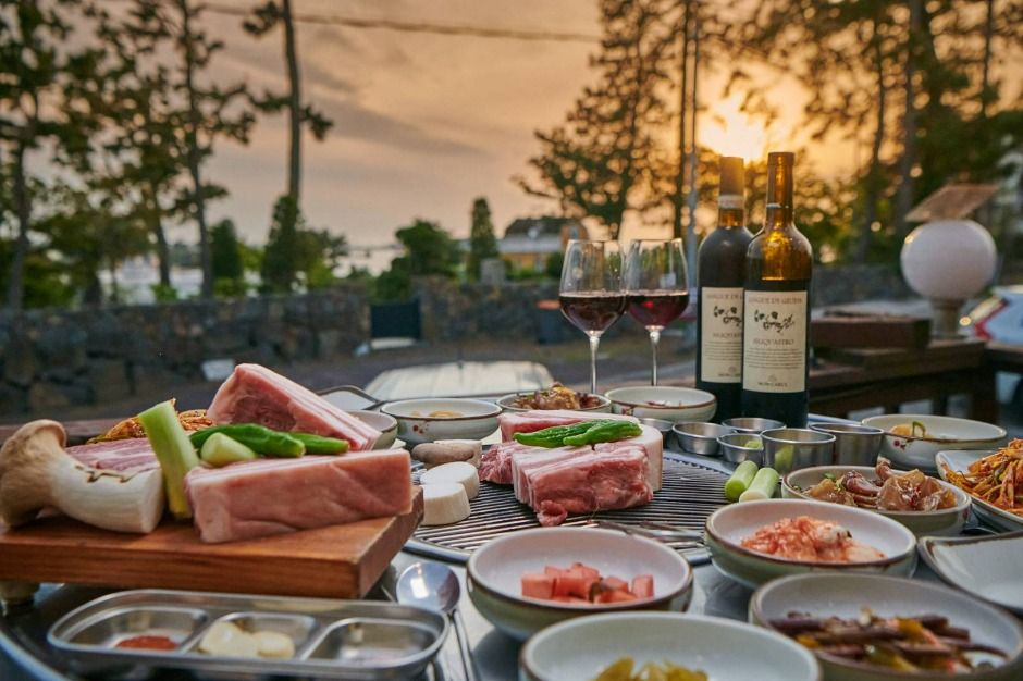 제주산 흑돼지를 7일간 교차 숙성해 깊은 풍미와 부드러운 식감을 살려내는 것이 가장 큰 자랑이다. 신선한 해산물과 함께 차려내는 모둠 한상은 여행객은 물론 현지인들에게도 큰 사랑을 받고 있으며, 두툼하게 썰어낸 근고기 역시 고소한 육즙과 쫄깃한 식감으로 꾸준히 인기다. 이곳에서는 샤브식으로 즐기는 특별 메뉴 ‘한라산불고기’도 한 번쯤 경험해 볼 만하다. 한우 불고기와 살아 있는 제주 해산물이 어우러져 색다른 맛을 선사한다. 저녁 무렵이면 고내리 포구 너머 붉게 물드는 일몰과 함께 식사를 즐길 수 있어, 맛과 풍경을 동시에 누릴 수 있는 특별한 시간이 완성된다. 식사 후 포구를 따라 산책하며 제주의 바다를 느긋하게 감상할 수 있는 것도 뚱딴지 애월본점만의 매력이다.