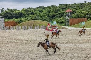 더(馬)파크는 세계 최초의 말 전문 테마공원이다. 승마와 기마공연 등 말의 고장 제주도에서 말에 관한 모든 것을 즐길 수 있다. 2008년 첫 공연작 '칭기스칸의 검은 깃발'을 시작으로 2013년 두 번째 공연작인 '천년의 제국 아! 고구려'까지 약 700만명의 관광객들이 관람을 했으며, 현재 "위대한 정복자 광개토태왕" 공연이 진행되고 있다. 공연단은 2008년 2월 라온랜드의 더마파크와 몽골 울란바타르 마사협회가 공동으로 구성한 전문 기마공연단이다. 단원들은 몽골 최대의 축제이자 전통행사인 나담축제를 중심으로 전국을 순회하며 기마공연을 해온 최고의 기마공연단원들 가운데 오디션을 거쳐 선발하였으며, 많은 사람들에게 재미와 감동을 선사하고 있다.