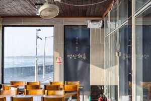 성산해촌에서는 창밖으로 성산일출봉이 한눈에 내다보이고 파란 바다가 펼쳐져 있는 경치가 아름다운 집으로 건물 바로 밑이 바다여서 마치 바다 위의 선상에서 식사를 하는 것처럼 느껴질 수도 있다. 식탁이 모두 원목 테이블로 되어 있어 화사한 분위기를 느낄 수 있으며, 바다를 바라보며 식사할 수 있는 곳이다.